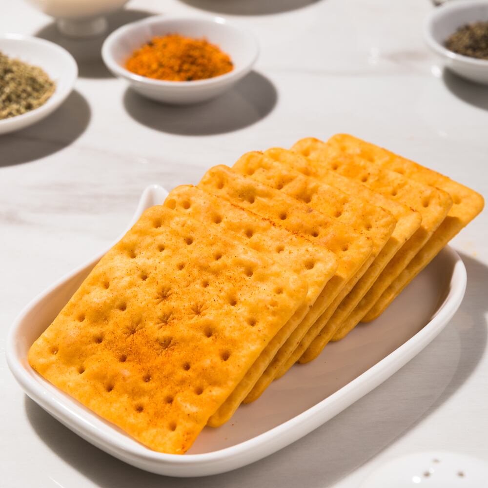 看板商品であり、人気のお土産として名高い「湘辣クラッカー」は、様々なスパイスで味付けされたピリ辛で香ばしい湘辣風味が特徴です。薄くてサクサクのクラッカーとの絶妙な組み合わせで、味を引き立てながらも主張しすぎないバランスが魅力。軽い辛さとともに、口の中に広がる香りが後を引き、「塩味」「香り」「辛味」の絶妙なハーモニーがクセになります。一度食べ始めたら止まらない美味しさです!
